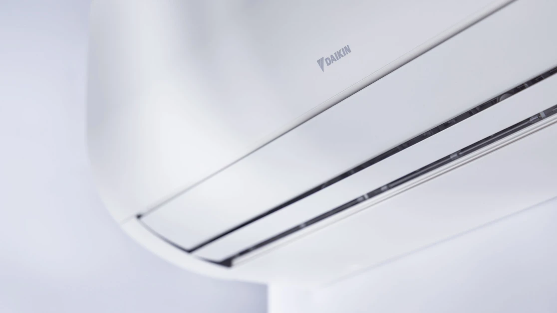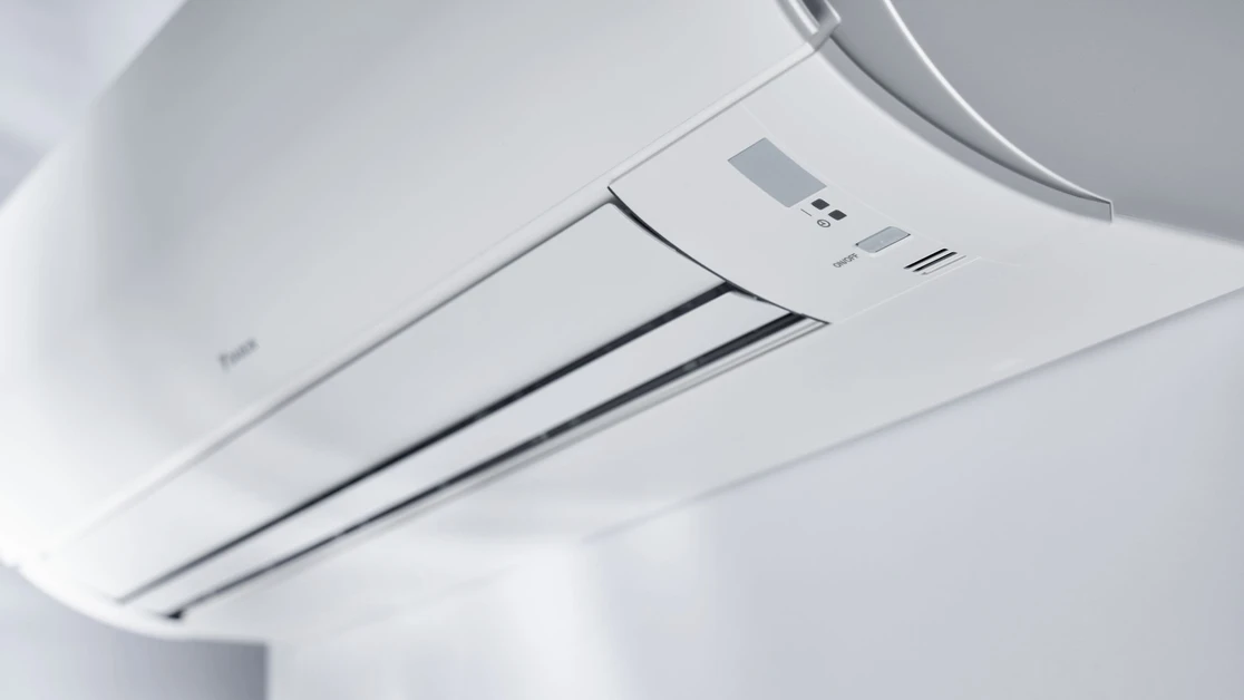 Een onopvallende lucht/lucht warmtepomp aan de wand die rendement en comfort samenbrengt.